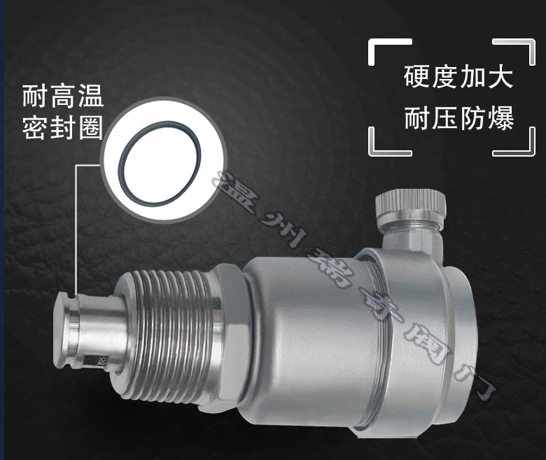 1.性能可靠。排放裝置材料使用PK-EP。和所有已知的合成材料相比,PK-EP有最好的性能和最高的可靠性。PK-EP能承受高溫(比排氣閥.的工作溫度高很多)。O型密封圈使用優化材料EPDM,保證在高溫下O型密封圈仍然有良好的彈性和運行可靠性。排氣閥閥芯的內部彈簧采用特殊的材料,并采用鍍鎳不銹鋼,防止氧化(如果氧化會影響閥芯的運動);排氣閥的排氣機制非??煽浚诔鰪S前每只閥均通過排氣實驗和壓力密封實驗。單個的組件均由高精度鑄
