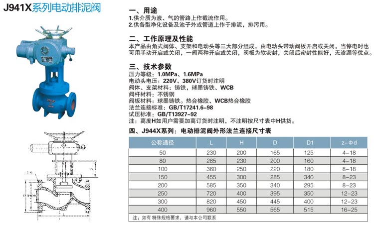 三、電動排泥閥技術參數: