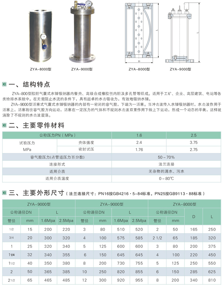 ZYA膠膽氣囊式水錘吸納器